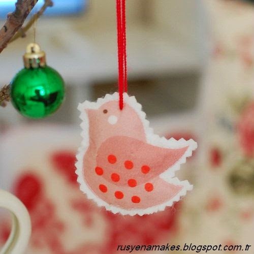 Aslında çok da kolay... Tüm desenin baskı ile yapılmış olması işi kolaylaştırıyor. Kenar dikişleri, içini doldurma ve asma ipi ekleme gibi üç ana işlemi var. Ama siz, "ben desenlerin üstlerine de bişeyler yapmalı, bişeyler işlemeliyim" derseniz, o ayrı. Eminim öyle de harika olur. Aklımdan geçmedi değil... :) Belki ileride, geniş geniş zamanlarım olursa bir de öyle denerim.